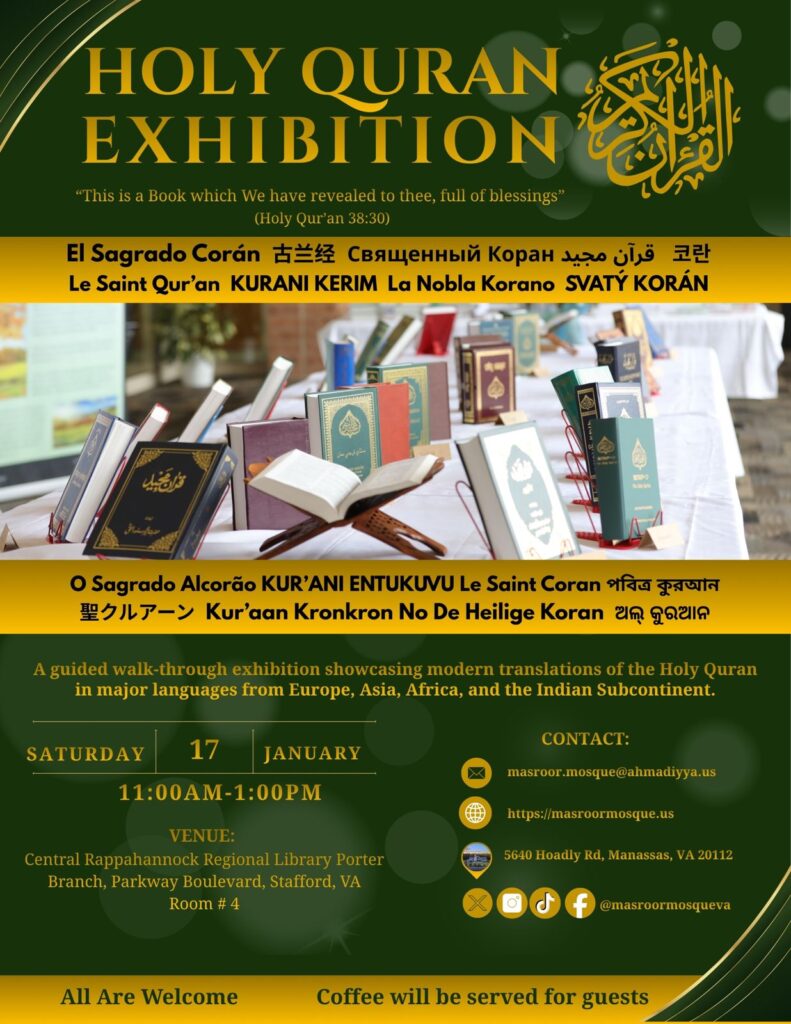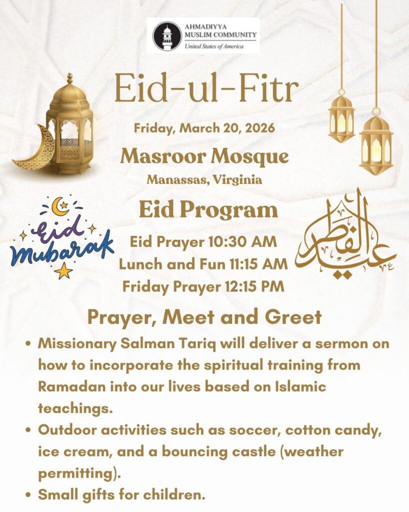 Welcome to Masroor Mosque in Manassas, Virginia. Our motto “Love for All, Hatred for None,” illustrates our commitment to fostering harmony in our community through friendship, dialogue, and service.