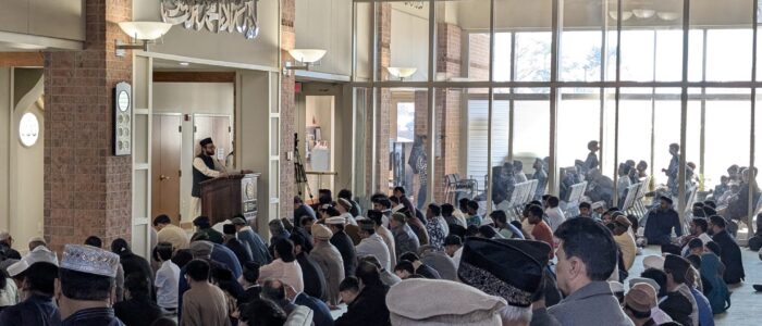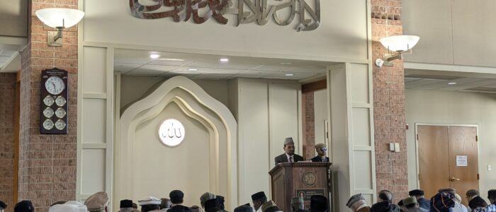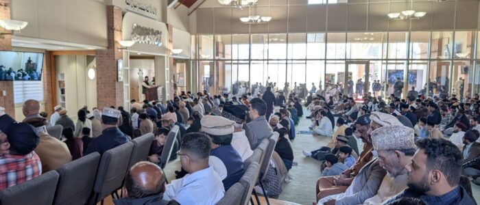 The Eid prayer was led by Imam Salman Tariq, followed by the Eid sermon. In his sermon, Imam Salman Tariq emphasized the importance of living simply, following the example of the Holy Prophet Muhammad (may the peace and blessings of God be upon him) and his companions.